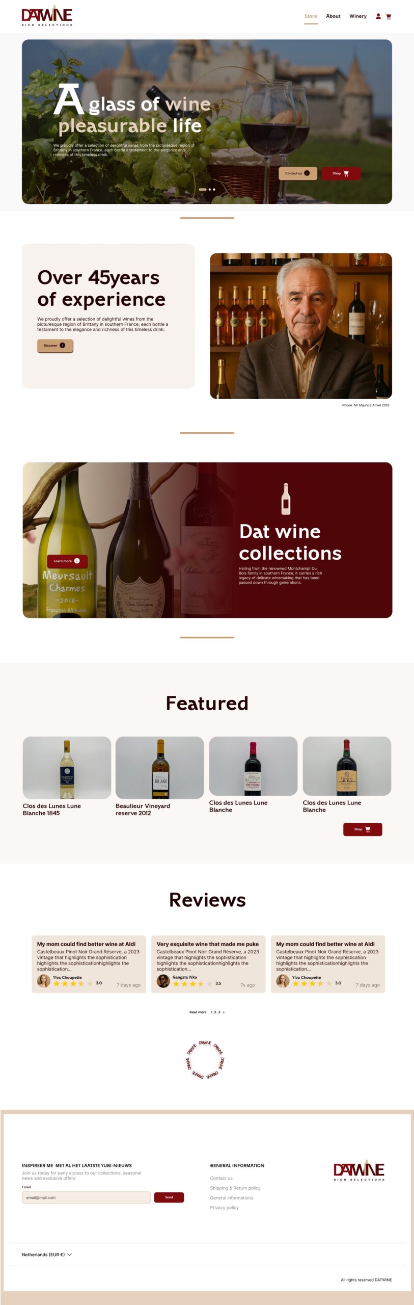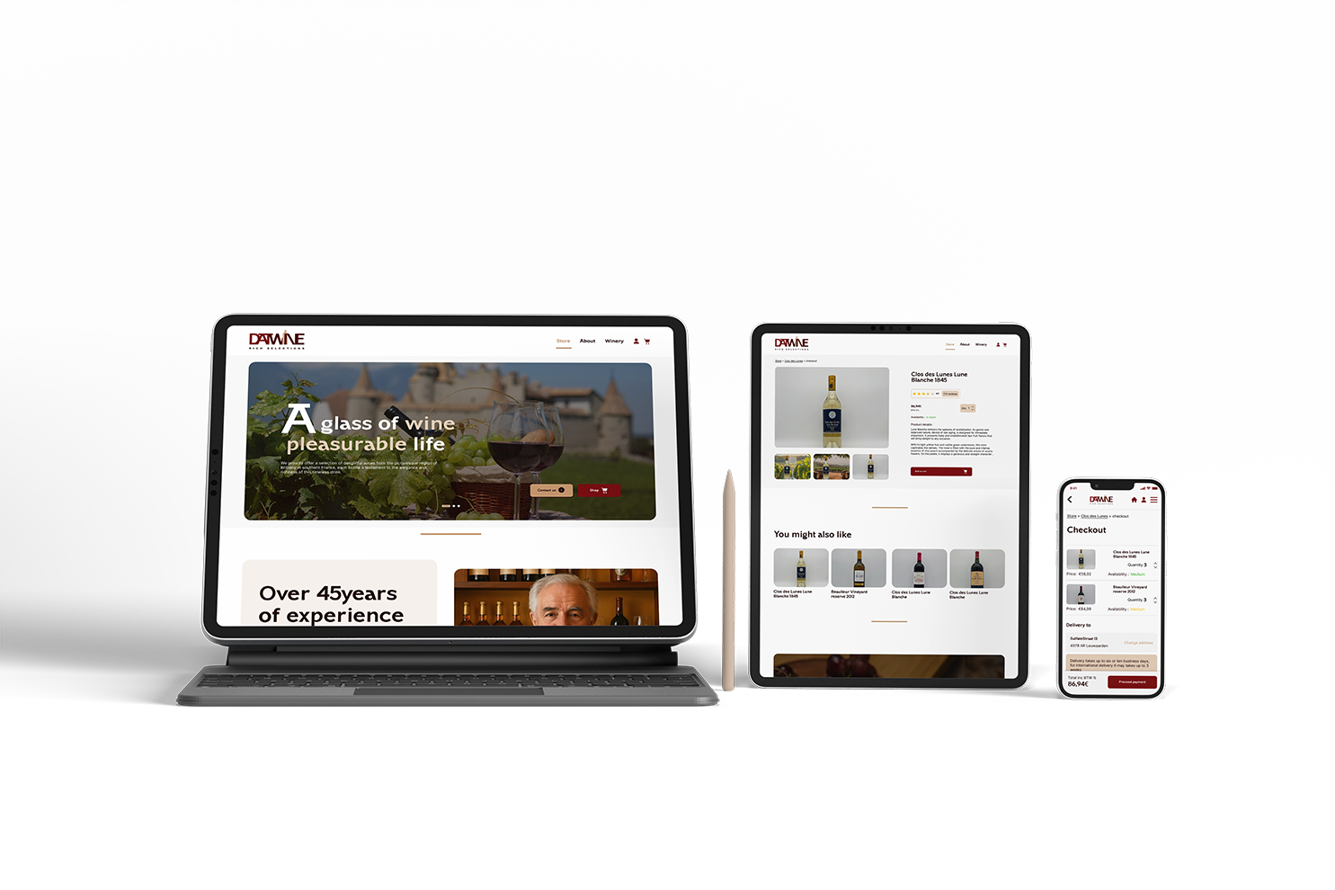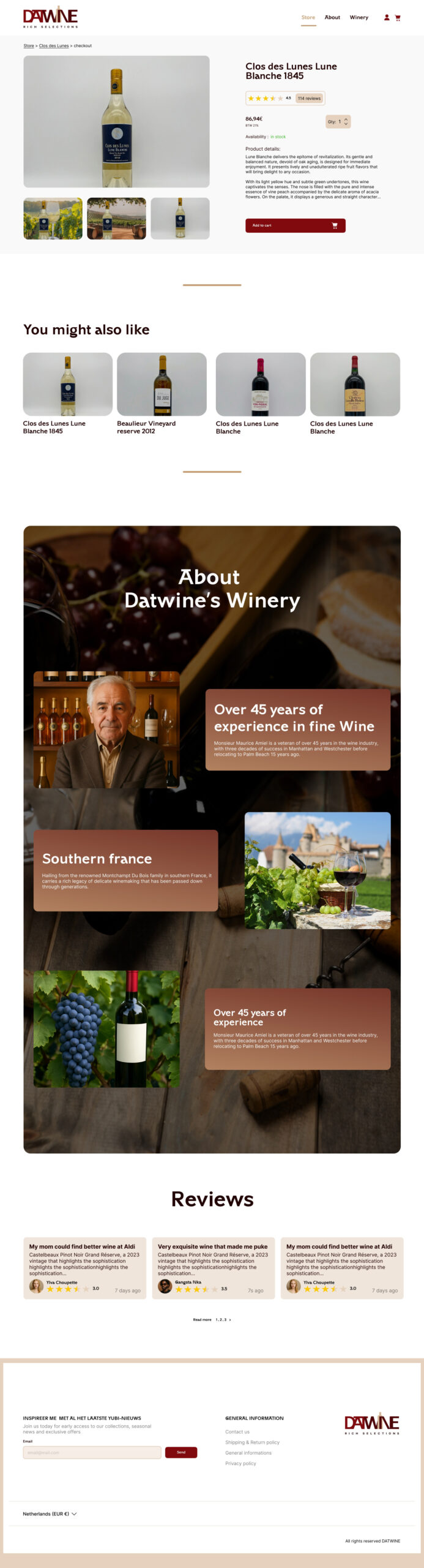 A platform for an old French vineyard, offering a webshop that preserves its heritage and shares its stories through the online experience.