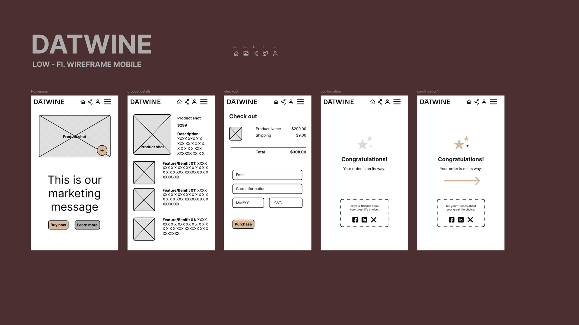 Mobile first wireframing of Datwine