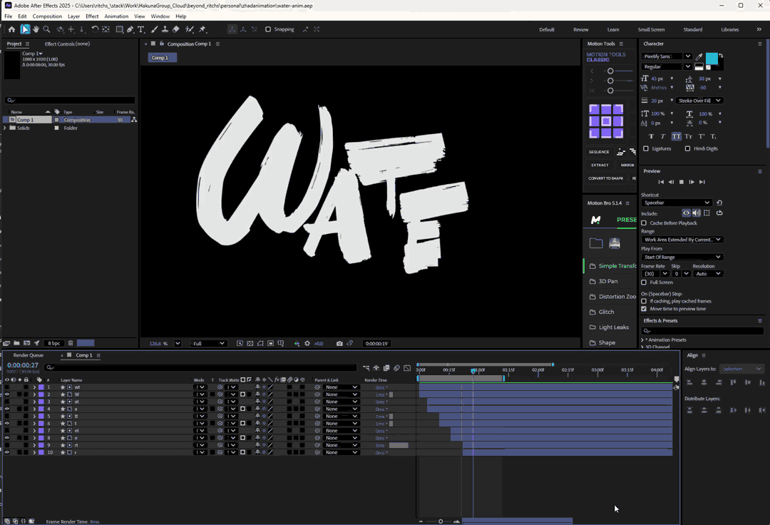 font animation water